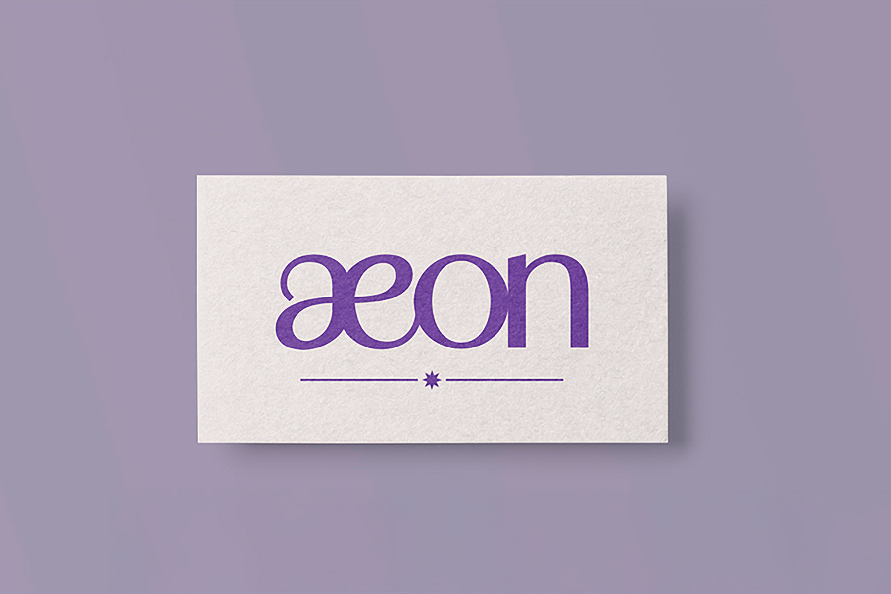 Logo and brochure for mock design agency Aeon Creative. The design looks to the future while symbolizing timelessness, reflecting the agency’s name and vision.